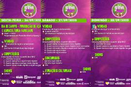 A programação inicia na sexta-feira (26) com o Dia de Campo, voltado para a produção de açaí e agricultura familiar, além da abertura da Feira de Produtos de Açaí e Artesanato, competições divertidas e partidas amistosas de futebol. À noite, a festa ganha ritmo com shows de Matheus Fernandes e Suanny Batidão.